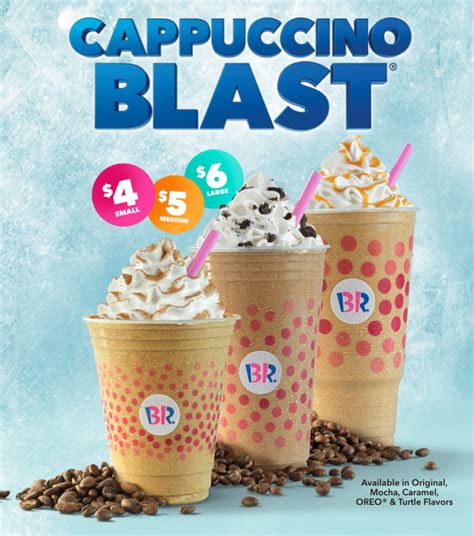 Baskin Robbins Coffee Menu. Home of delicious cones, shakes, treats, cakes, pies, and more! Transform your scoop into a mighty dinosaur, majestic unicorn, or out of this world martian.